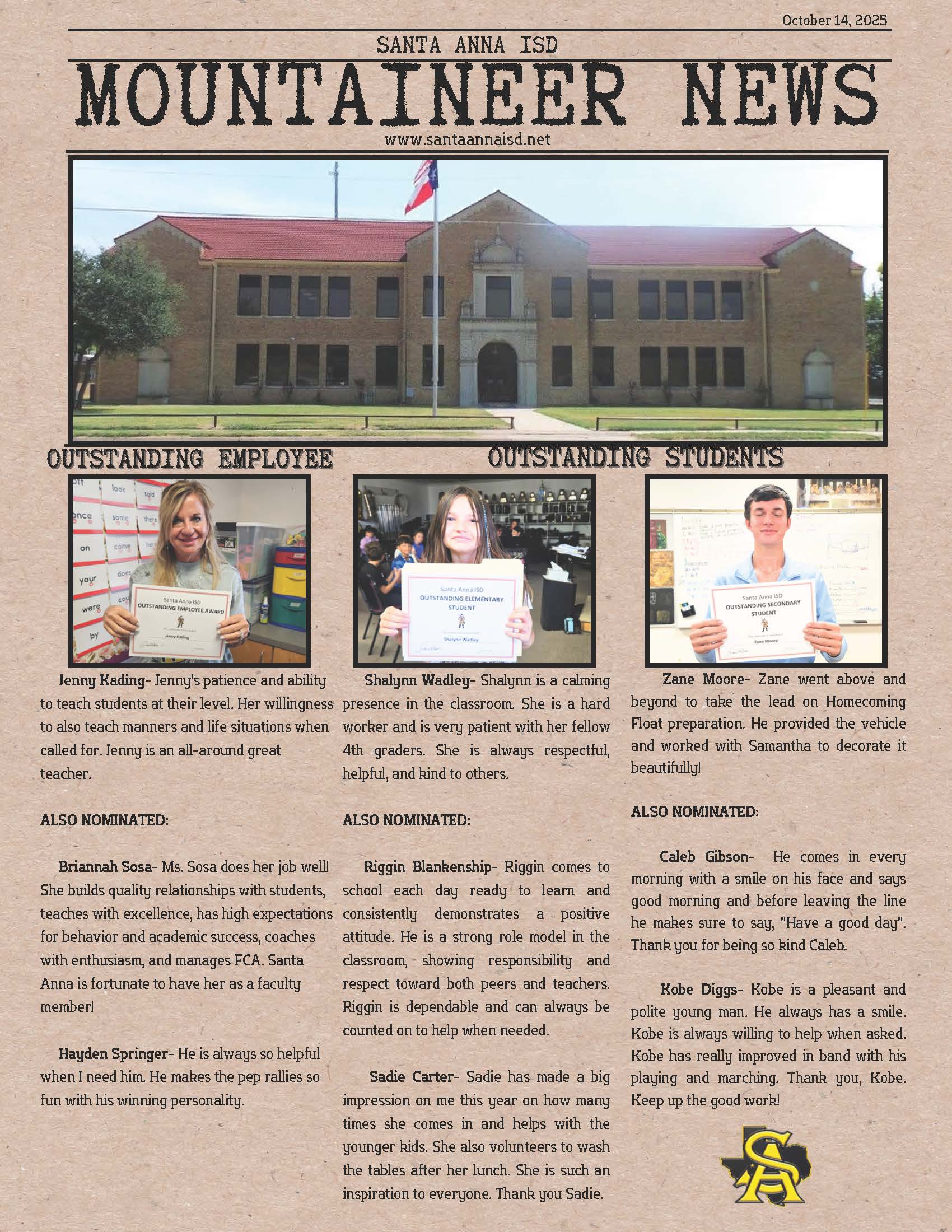 Santa Anna ISD is where life-long learners are empowered to believe in their abilities, to exceed expectations, and to be successful citizens.