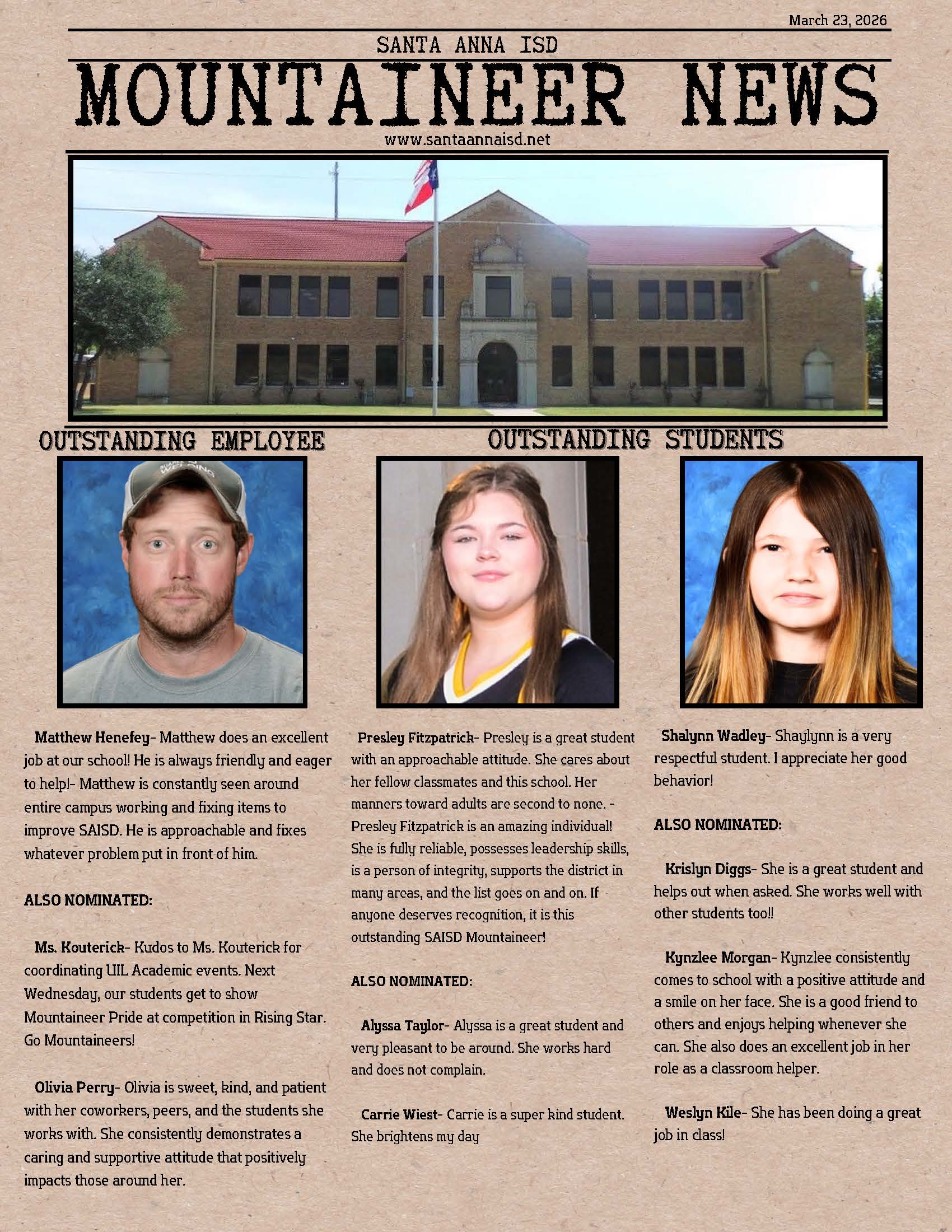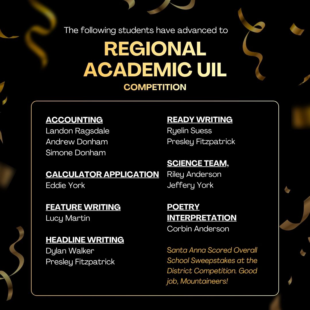 Santa Anna ISD is where life-long learners are empowered to believe in their abilities, to exceed expectations, and to be successful citizens.