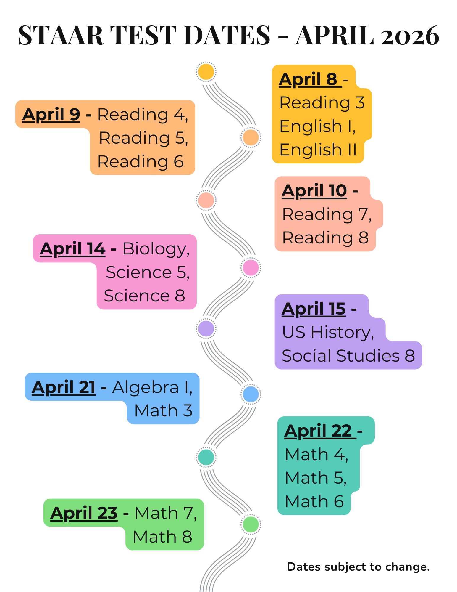 Test Dates for April - STAAR & End of Course
